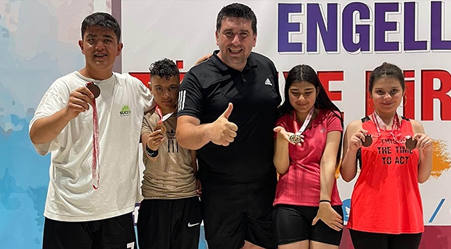 Okul Sporları Bedensel Engelliler ve Görme Engelliler Yüzme Türkiye Şampiyonası finallerinde dereceye girerek madalya kürsüsünde yer alan genç sporcular Selda Özcan, Şevval Çelik, Emirhan Kılınç ve Berkay Yavuz’u tebrik eden Gençlik ve Spor İl Müdürü Ali Osman Bebek, elde edilen başarılardan dolayı gurur duyduklarını belirterek antrenör ve sporculara başarılarının devamını diledi.