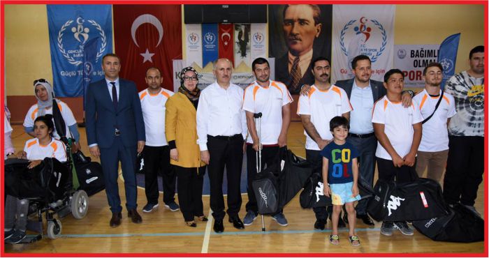 Saygı duruşu ve İstiklal Marşı’nın okunmasıyla başlayan programın devamında Vali Meral eşi Zehra Meral ve il protokolü tarafından engelli bireylere masa tenisi, oturarak voleybol ve satranç malzemeleri dağıtıldı.