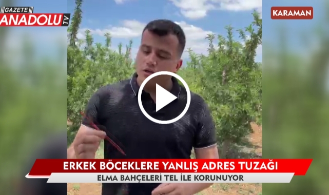 Elma bahçelerinin zararlı böceklerden korunmasına yönelik geliştirilen tel ile böceklerin çiftleşmesinin önüne geçiliyor
