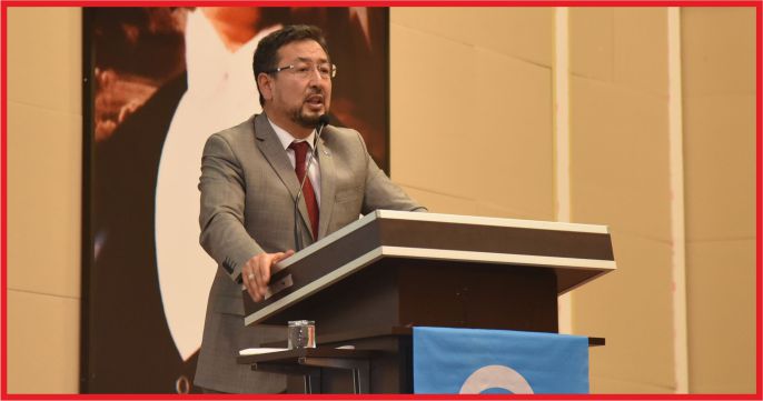 Açılış konuşmasının ardından söz alan Doğu Türkistan Milli Meclis Başkanı Seyit Tümtürk, Doğu Türkistan’ın coğrafi konumu, tarihi, Çin Devleti tarafından uygulanan işkenceler, asimilasyon ve soykırım politikalarını slayt ve fotoğraflar üzerinden katılımcılara aktardı.