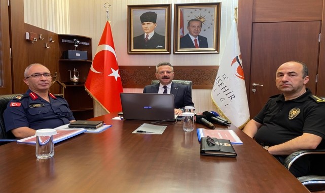 Vali Aksoy, İl Jandarma Komutanı Tuğgeneral Erhan Demir ve İl Emniyet Müdürü Tolga Yılmaz ile Valilikte düzenlenen toplantıda, "Türkiye'nin Huzuru, Güvenli Şehir Eskişehir" olarak çalışmalarını büyük bir titizlikle sürdürdüklerini söyledi.
