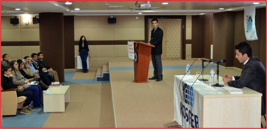 Üniversitede okuyan gençlere KOSGEB’i tanıtmak amacıyla burada klarını belirten Uzman Yardımcısı Hüseyin Ateş, “Türkiye girişimcilik faaliyetleri açısından öncü bir ülke fakat bu faaliyetlerin devamlılığı yok.” . Bu aşamada KOSGEB olarak esnaflarımıza ve girişimcilerimize yardımcı olmaya çalıştıklarını ifade eden Ateş şöyle : “Para kazanmak girişimcilik ruhuna sahip insanların kesinlikle tek amacı olmamalı. Esas amaç işin devamlılığını sağlayacak şekilde diği işi yapma arzusu ile insanlara fayda sağlamak olmalı.”