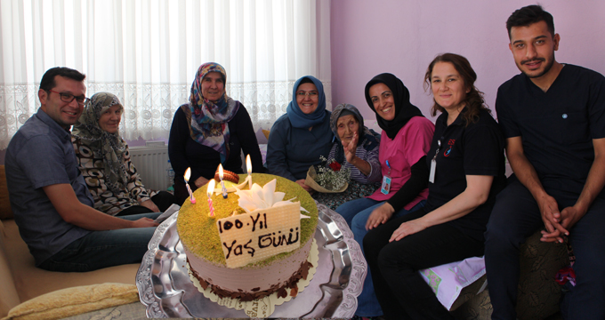 Karaman Devlet Hastanesi Evde Sağlık Ekibi, 100 yaşına giren 1919 doğumlu kalça kırığı iyle evde sağlık hizmetlerine kayıtlı Fatma teyze için sürpriz doğum günü düzenledi.
