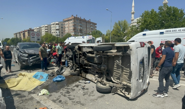 Konya'da minibüsün karşı şeride geçip 2 araca çarpması sonucu 1 kişi öldü, 4 kişi yaralandı.