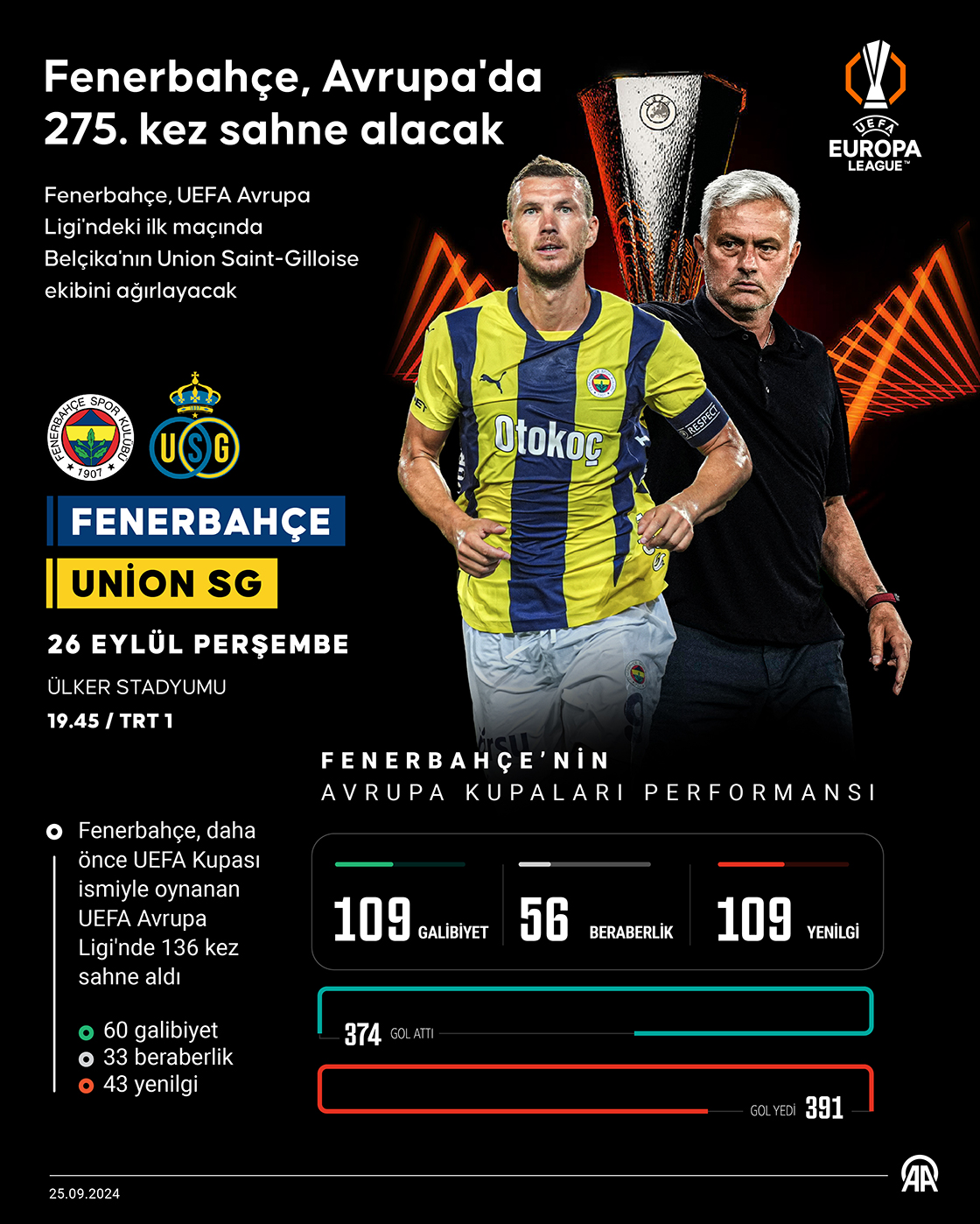 Fenerbahçe, UEFA Avrupa Ligi'ndeki ilk maçında Belçika'nın Union Saint-Gilloise ekibini ağırlayacak.