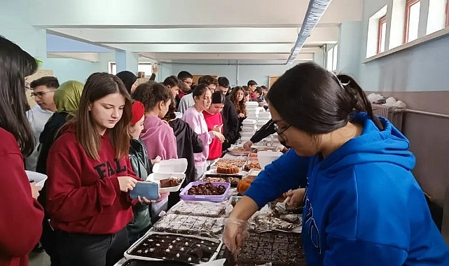 Öğretmen, öğrenci ve velilerin hazırladığı yiyecekler, kermeste öğrenciler tarafından satışa sunuldu.