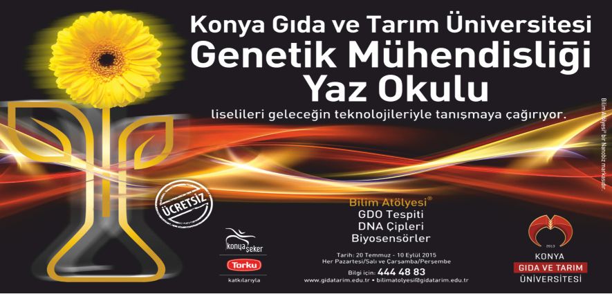 Konya Gıda ve Tarım Üniversitesi Genetik Mühendisliği Yaz Okulu’na katılmak isteyen lisesiler, http://www.gidatarim.edu.tr sitesini ziyaret edebilir, telefon ve e-posta aracılığıyla ayrıntılı bilgi alabilirler.