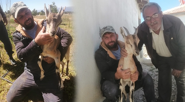 Karaman'da kırsal alanda çoban köpeklerinin kovaladığı geyik yavrusunu vatandaşlar kurtardı.