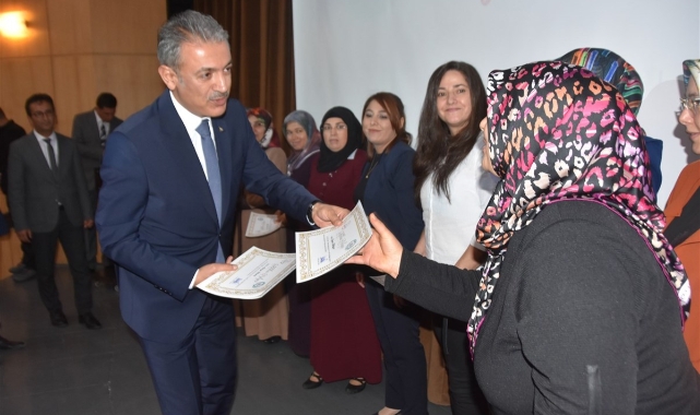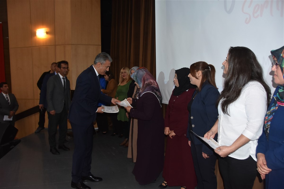 Vali Tuncay Akkoyun, Piri Reis Kültür Merkezinde düzenlenen sertifika töreninde, Millî Eğitim Bakanlığınca 81 ilde hayata geçirilen Aile Okulu Projesi kapsamında Karaman’da eğitimlerini tamamlayan 723 veliye sertifikalarını takdim etti.
