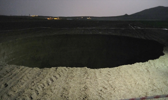Çapı yaklaşık 25 metre, derinliği ise 15 metreyi bulan obruğu görünce tedirgin olan vatandaşlar, durumu yetkililere bildirdi.