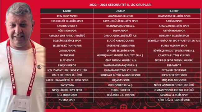 2022-2023 sezonunda 53 takımın mücadele edeceği TFF 3. Lig'de müsabakalar 1 ve 3. Grup'ta 18, 2. Grup'ta ise 17 takımla oynanacak. Yeni sezon 3-4 Eylül tarihinde yapılacak maçlarla başlayacak.