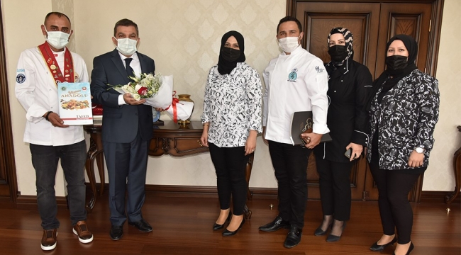 Vali Mehmet Alpaslan Işık, Türkiye Aşçılar Federasyonu Başkan Vekili Hamza Kalkan ve beraberindeki yönetim kurulu üyelerini makamında kabul etti.