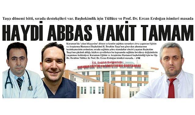 Karaman’da adeta “yılan hikayesine” dönen ve kentin sağlık sorunlarını zirveye çıkaran Karaman Eğitim ve Araştırma Hastanesi Başhekimi H. İbrahim Taşçı’nın görevden alınmasının kesinleşmesinin ardından gözler, Taşçı’nın gücünü aldığı kişilere çevrildi. Bu kapsamda sağlıkta üst düzey değişimlerin yaşanması bekleniyor. Karaman Eğitim ve Araştırma Hastanesi başhekimliği için ise Op. Dr. İbrahim Tülüce ile Prof. Dr. Ercan Erdoğan isimleri masada.