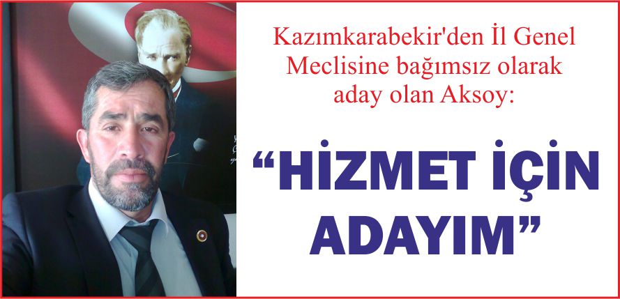 Kazım Karabekir’in MHP’li il genel meclis üyesi Mustafa Aksoy, 30 Mart’da yapılacak seçimlerde Kazım Karabekir ilçesinden bağımsız olarak il genel meclisine yeniden aday ğunu açıkladı.
