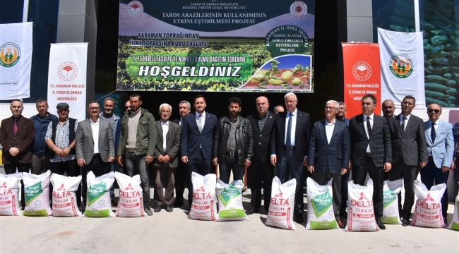 Karaman da kuru tarım arazileri, nadasa bırakılmış araziler, atıl vaziyette kalmış tarım arazilerinin ekilerek ülke ekonomisine kazandırılması ve üreticilerin kazanmalarının desteklenmesi amacıyla hazırlanan proje kapsamında % 75 İdaremiz, %25 üretici katkılı olmak üzere; Toplamda 60 Köyümüze, 218 Çiftçimize 20.350 kg Azkar yerli sertifikalı tohum dağıtımı gerçekleştirilmiştir.