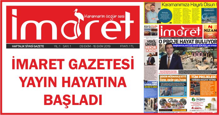 Karaman'da 2016 yılından bu yana internet haber yayıncılığı yapan İmaret Medya grup haftalık gazete yayınına başladı. İmaret gazetesi Karaman'da haftalık çıkan 6 gazetenin yanı sıra bundan böyle 1500 traj ile gündeme dair haberleri her hafta okuyucularına ulaştıracak.