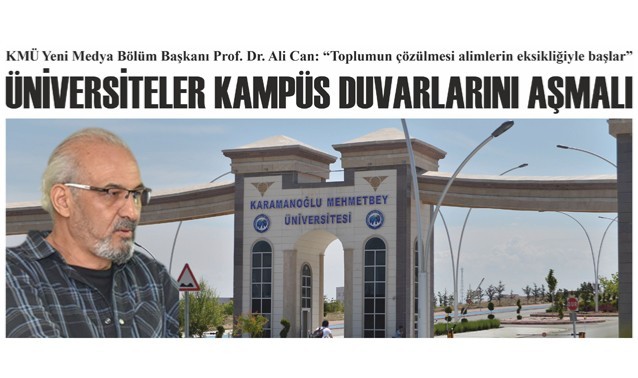 Karamanoğlu Mehmetbey Üniversitesi’nde (KMÜ) düzenlenen “Basın Gözünde Karaman” konulu çalıştayda, Karaman halkının basının toplumsal sorunları ve yerel yöneticileri eleştiren haberlere duyarsız kalması konusu ele alındı. Çalıştay başkanı, Yeni Medya Bölüm Başkanı Prof. Dr. Ali Can, duyarsızlığın nasıl giderilebileceğini yaptığı öz eleştiri ile işaret etti. Prof. Dr. Can, üniversitelerin topluma karşı daha aktif olması gerektiğini vurguladı: “Bir toplumda bozukluk, çözülme, dejenerasyon varsa, kesinlikle orada âlim yok demektir. Bugün âlim olarak nitelendirdiğimiz kurum üniversitelerdir. Üniversitelerdeki akademisyenlerdir. Üniversitenin ışığının topluma yansıması lazım. Valilik ve belediye gibi yerel yönetimlerle iş birliği yaparak, toplumu nasıl kültürize edebileceğimizi ve ideal bir şehir inşa edebileceğimizi düşünmeliyiz.”