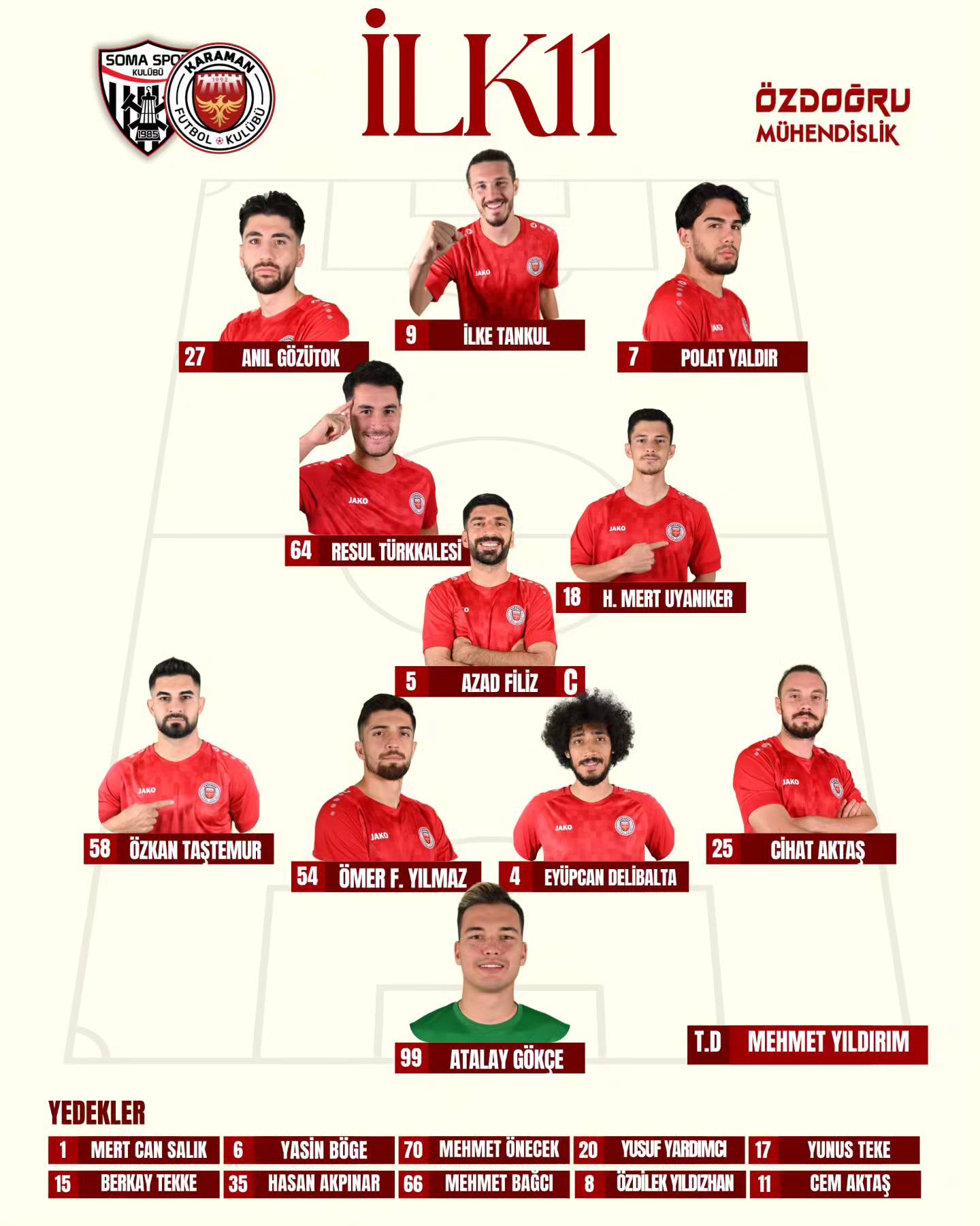 Temsilcimiz sahaya, Atalay Gökçe, Özkan Taştemur, Ömer Faruk Yılmaz, Eyüpcan Delibalta, Cihat Aktaş, Azad Filiz, Hüseyin Mert Uyanıker, Resul Türkkalesi, Anıl Gözütok, İlke Tankul ve Polat Yaldır ilk 11'i ile çıkacak
