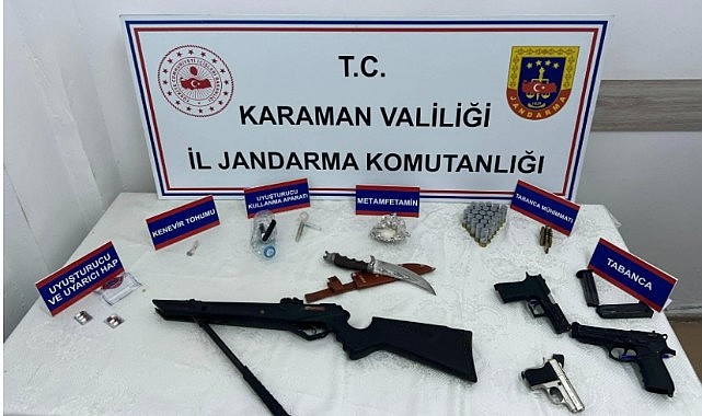 3 Haziran 2024 Merkez İlçe Jandarma Komutanlığı Bucakkışla Jandarma Komutanlığı ve KOM Şube Müdürlüğü ekipleri tarafından Bucakkışla köyünde M.B isimli şahsın evinde yapılan aramada; satışa hazır vaziyette (32.2) Gr. Metamfetamin, Kenevir bitkisi tohumu, uyuşturucu hap, (3) adet Ruhsatsız Tabanca, (25) adet Av Tüfeği Fişeği, (19) Adet Tabanca Fişeği, (1) Adet Bıçak, (1) Adet Havalı Tüfek ele geçirildi.