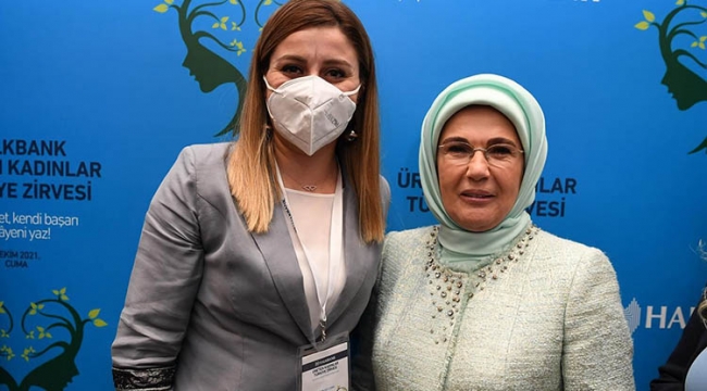 Sürdürülebilir kalkınmayı başarmayı isteyen her ülkenin, kadınların güçlenmesine büyük vurgu yaptığını belirten Emine Erdoğan, "Çünkü kalkınma ancak kadınların hem ekonomik hem de sosyal olarak güçlenmesiyle mümkündür. Ekonomik ve sosyal güçlenme, birbirini tetikleyen ve büyüten unsurlar. Ülkemizin güzide kurumlarından Halkbank'ın bu konuya gösterdiği önem gerçekten büyük bir takdiri hak ediyor. Kadınların kendi işlerini kurmaları ve bu konuda cesaretlenmeleri için verdikleri krediler hayatları dönüştürüyor" diye konuştu.