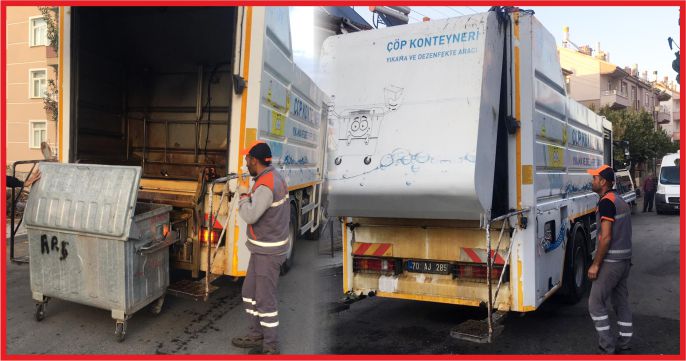 Karaman Belediyesi şehir genelinde cadde ve sokaklarda yer alan çöp konteynerlerinin kötü kokusunu önlemek ve daha temiz bir ortam sağlamak için temizlik çalışmalarını sürdürüyor. İl genelindeki cadde ve sokaklarda yer alan çöp konteynerlerinin pis kokmaması ve çevrede yaşayan insanları rahatsız etmemesi amacıyla çöp konteynerlerinin dezenfekte işlemleri belediye ekiplerince aralıksız devam ediyor.
