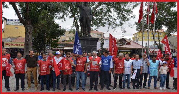 Sendikanın İl Temsilcisi Nedim Ünal, Cumhuriyet Parkında düzenlenen eylemde yaptığı konuşmada toplu sözleşme görüşmelerinin normal seyrinde ilerleyemediğini söyledi.
