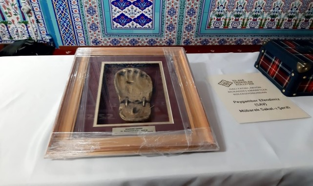 Yatsı namazının ardından cami içerisinde Hz. Muhammed ve sahabe dönemine ait kutsal emanetler sergilendi.