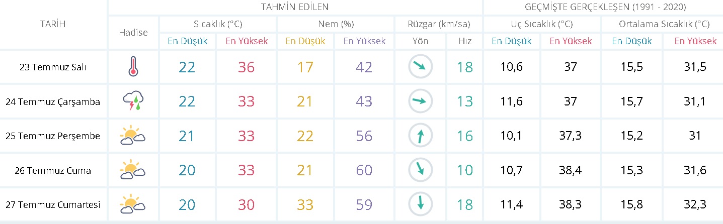 Meteoroloji Genel Müdürlüğü'nün yayınladığı son rapora göre, önümüzdeki günlerde de sıcaklıkların yüksek seyretmesi bekleniyor. Ancak çarşamba günü için yapılan tahminler, sıcak hava dalgasının yerini kısa süreli bir serinlemeye bırakacağını gösteriyor. Çarşamba günü Karaman genelinde yağmur bekleniyor ve bu yağışın, uzun süredir bunaltıcı sıcaklardan bunalan vatandaşlara bir nefes aldıracağı düşünülüyor. Beklenen yağışların, sıcaklığın etkisini azaltarak geçici bir serinlik getireceği tahmin ediliyor.