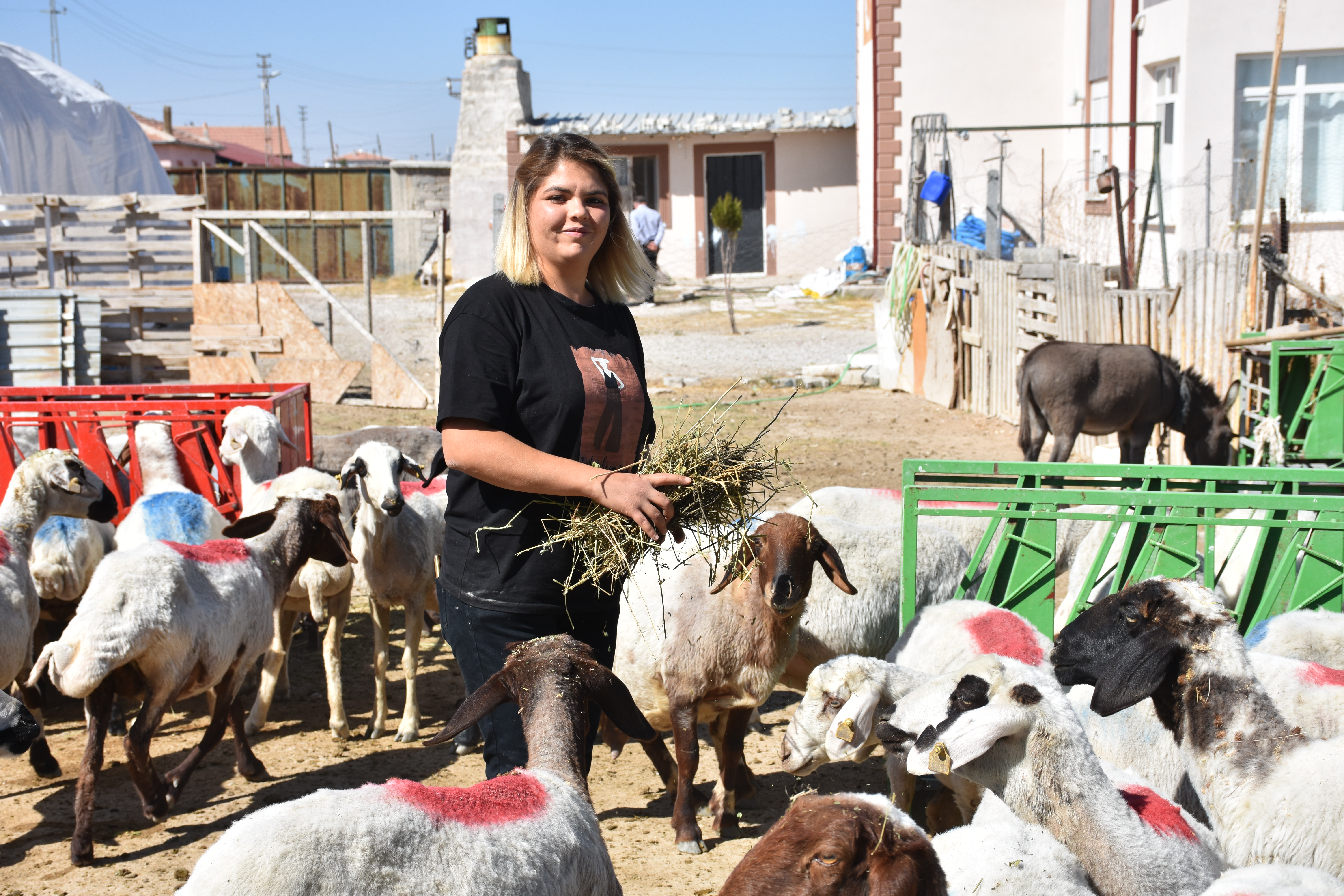 Karaman'da bir çocuk annesi üniversite mezunu Sümeyye Teber, devlet desteğiyle kurduğu 70 küçükbaşın bulunduğu çiftliğindeki hayvan sayısını artırarak üretime daha fazla katkı sağlamak istiyor.