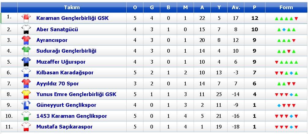 Karaman Amatör Küme’de 5. hafta karşılaşmaları oynandı. Haftanın en dikkat çeken mücadelesinde lider Karaman Gençlerbirliği GSK, Yunuskent Sahası’nda karşılaştığı Aber Sanatgücü’ne 4-3 mağlup oldu. Karaman Gençlerbirliği GSK, aldığı mağlubiyete rağmen liderliğini sürdürürken, Aber Sanatgücü puanını 10’a yükselterek haftayı ikinci sırada tamamladı.