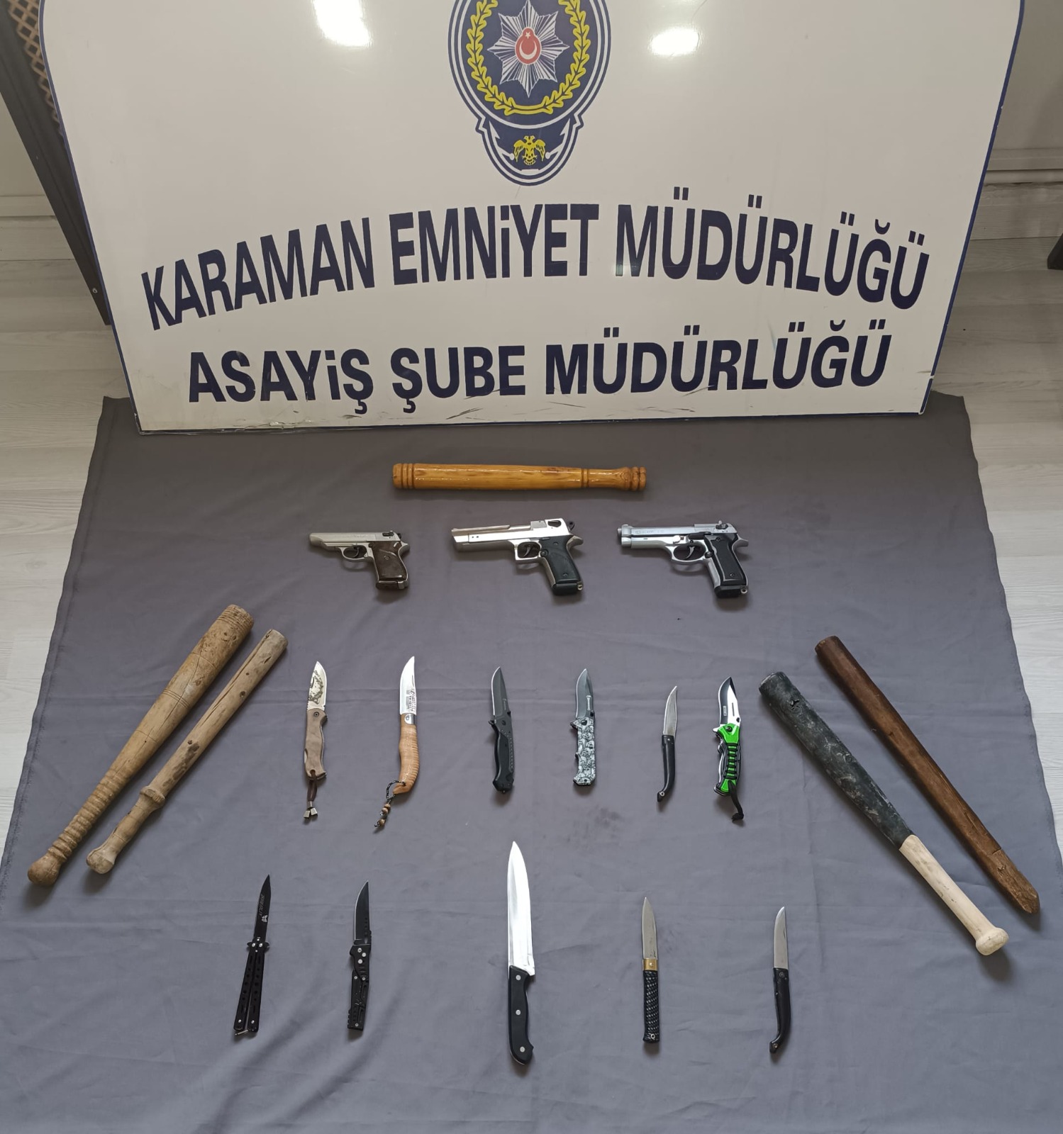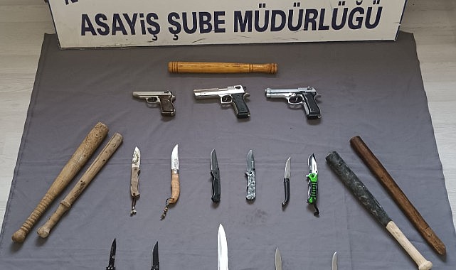 Ekipler, 4 ruhsatsız tabanca, 11 kesici/delici alet, 12 fişek, 181 gram uyuşturucu ve 244 uyuşturucu hap ele geçirdi.