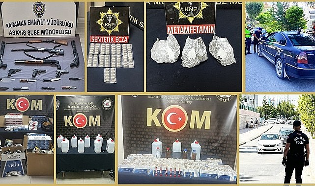 Denetimler esnasında, (3) adet ruhsatsız tabanca, (5) adet ruhsatsız tüfek, (8) adet kesici/delici alet, (9) g uyuşturucu madde (113) adet uyuşturucu hap, (8.400) adet bandrolsüz dolu makaron, (40.000) adet bandrolsüz boş makaron, (12) kg kıyılmış tütün, (4) lt kaçak viski, (50) lt etil alkol ile (9) adet içki yapımında kullanılan aroma verici kit ele geçirilmiştir.