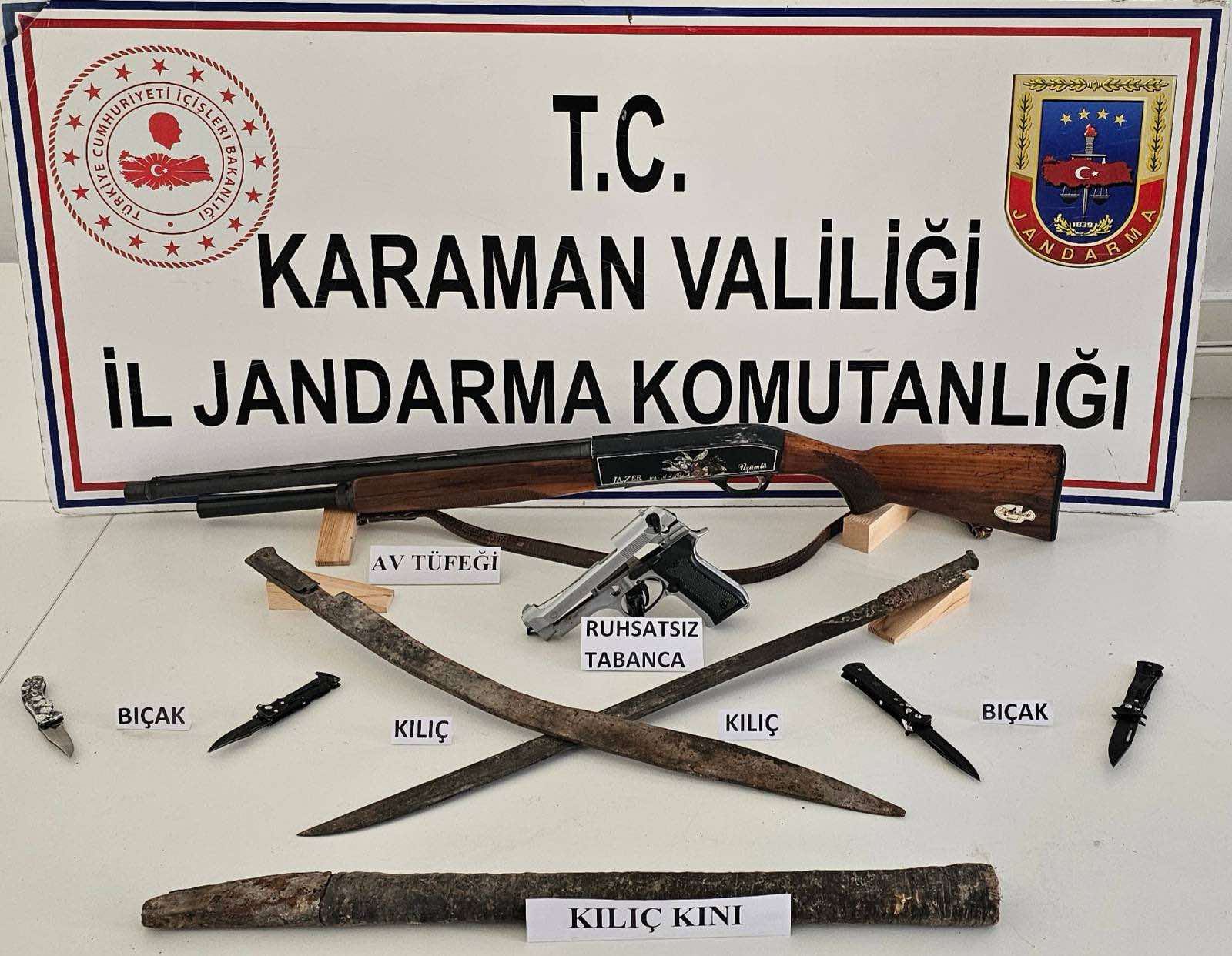 Denetimler esnasında yapılan aramalarda da (5) adet tuhsatsız av tüfeği, (2) adet ruhsatsız tabanca, (2) adet şarjör, (11) adet tabanca fişeği, (6) adet kesici alet (Kılıç/Bıçak) ele geçirildi.
