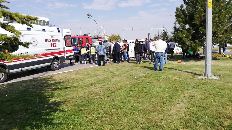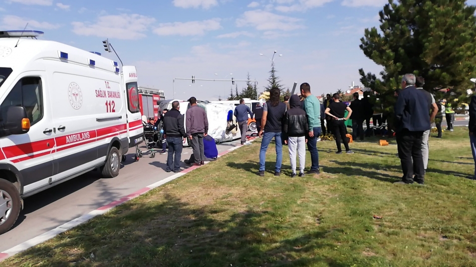Karaman'da ambulansla dolmuşun çarpışması sonucu biri ağır 10 kişi yaralandı.