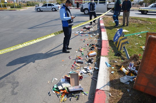 Çarpışmanın etkisiyle savrulan ambulans, kavşakta duran seyyar satıcı Rüstem Tümkaya'ya çarparak yan yattı.