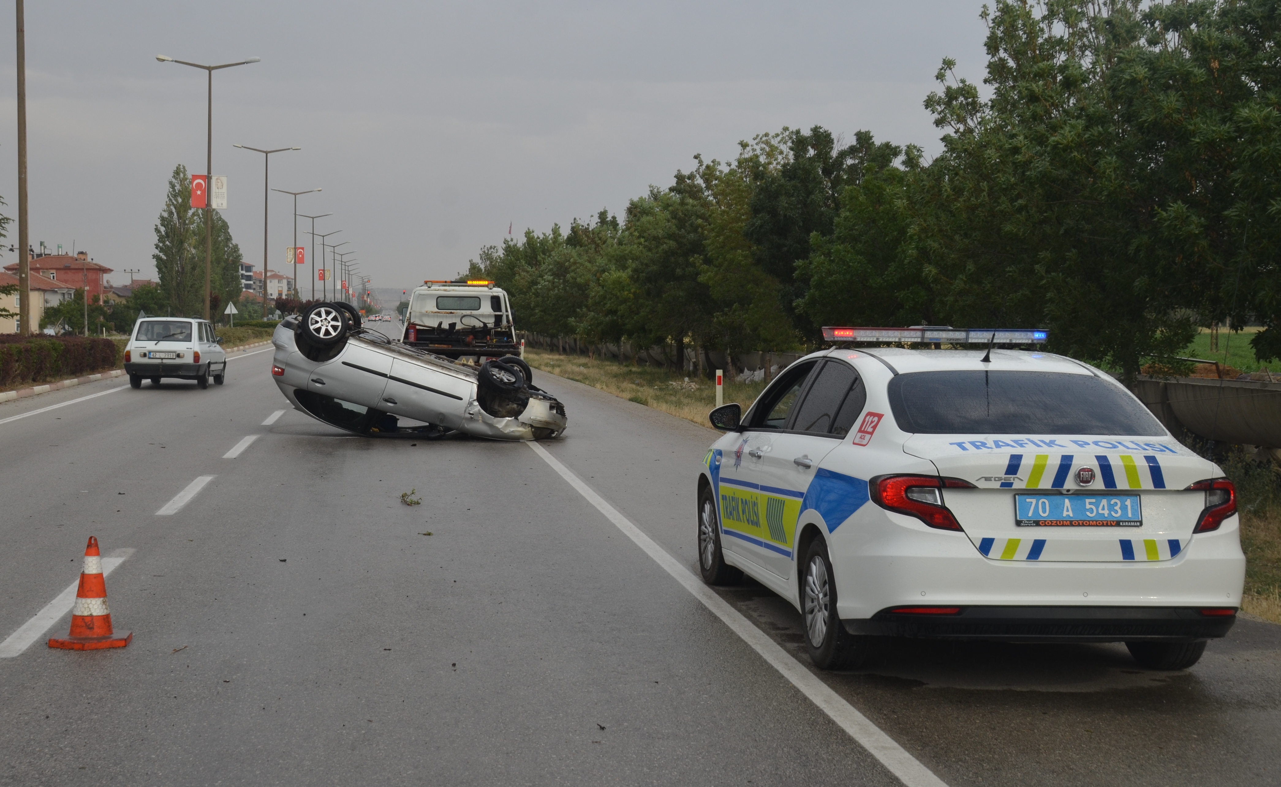 Karaman'da otomobilin takla atması sonucu, aynı aileden 2'si çocuk 4 kişi yaralandı.