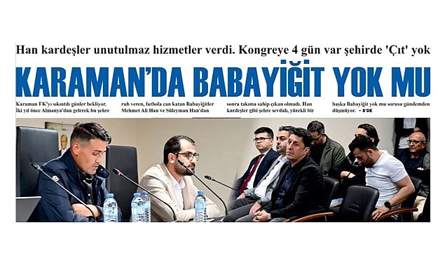 Karaman FK’yı sıkıntılı günler bekliyor. İki yıl önce Almanya’dan gelerek bu şehre ruh veren, futbola can katan Babayiğitler Mehmet Ali Han ve Süleyman Han’dan sonra takıma sahip çıkan olmadı. Han kardeşler gibi şehre sevdalı, yürekli bir başka Babayiğit yok mu sorusu gündemden düşmüyor.