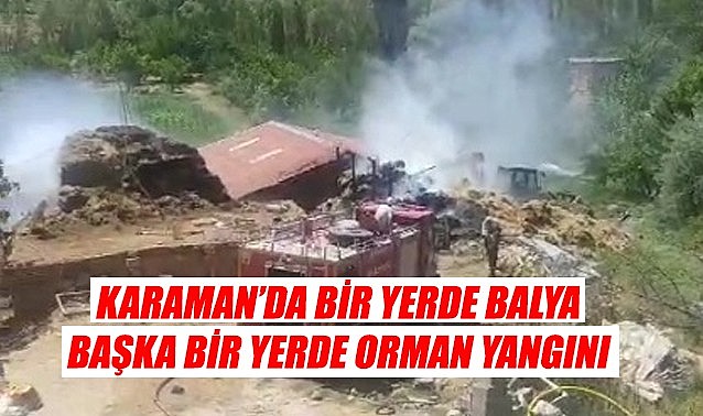 Karaman’da bir yerde balya yangını