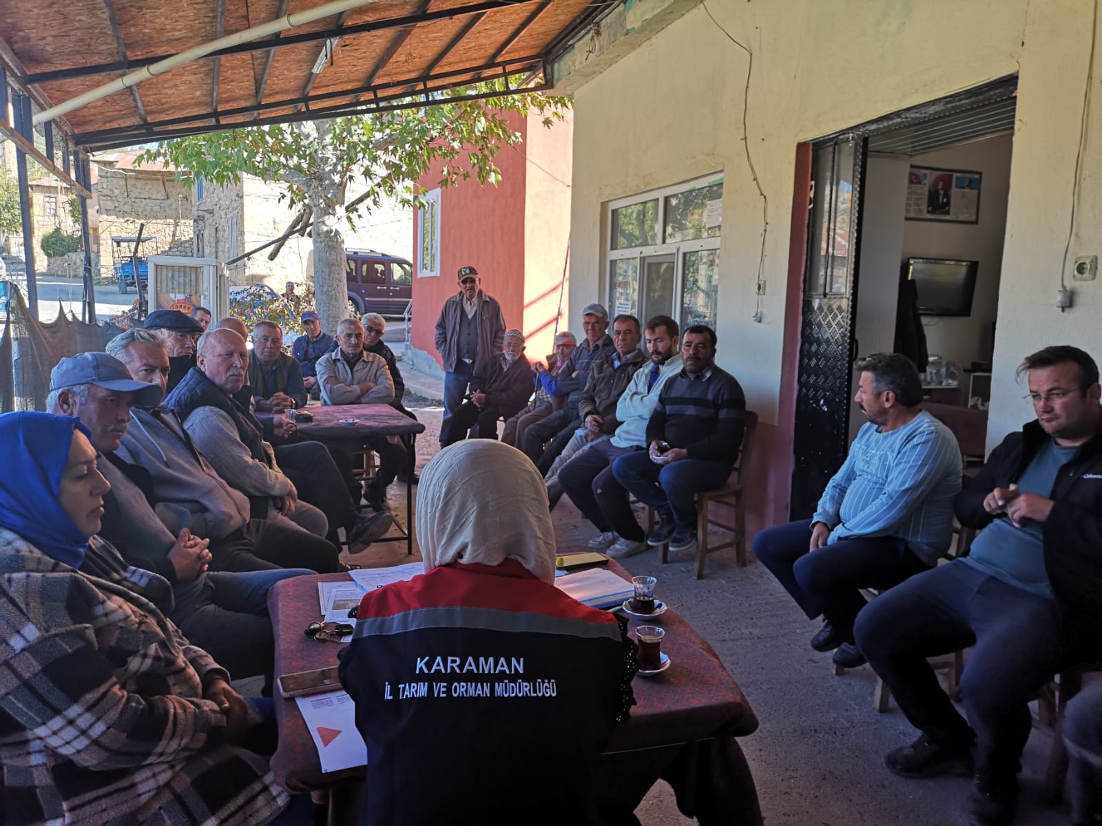 Karaman Tarım ve Orman İl Müdürlüğü tarafından yapılan açıklamada, “İl Müdürümüz, İl Müdür Yardımcılarımız, Şube ve İlçe Müdürlerimiz ile diğer personellerimiz üreticilerimizi ziyaret ederek tarım ve hayvancılık konusunda gelişmeleri paylaştı. Bakanlığımızın 'Tarımda Yeni Dönem' temasıyla başlattığı Üretim Planlaması ve Yeni Destekleme Modeli gibi konular hakkında üreticilerimize kapsamlı bilgilendirmelerde bulundular” ifadelerine yer verildi.