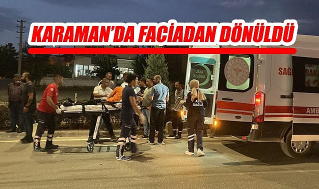 Karaman’ın Osmangazi Mahallesi Alparslan Türkeş bulvarındaki yaya geçidini kullanarak karşıdan karşıya geçmek isteyen motosiklet sürücüsüne otomobil çarptı. Motosiklet sürücüsü kazanın şiddetiyle yere savruldu. Kazayı gören çevredeki vatandaşlar durumu 112 acil servise bildirdi. İhbar üzerine olay yerine gelen sağlık ekipleri yaralıya kaza mahallinde ilk müdahaleyi yaptı. Sürücü yapılan müdahalenin ardından Karaman Eğitim ve Araştırma Hastanesine kaldırıldı.
