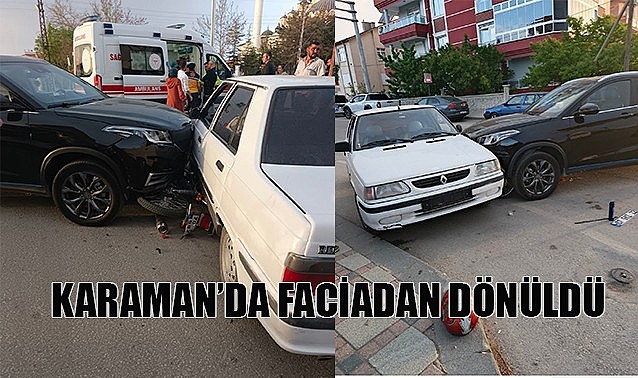 Karaman'da akşam saatlerinde Yunuskent Mahallesi Alparslan Türkeş Bulvarı üzerindeki kavşakta feci bir trafik kazası yaşandı. F.K. yönetimindeki 70 ABG plakalı SUV araç ile O.G.(28) idaresindeki 70 AP plakalı motosiklet kavşakta çarpıştı.