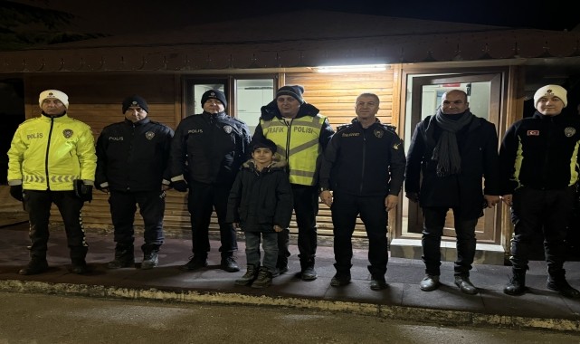 Karaman-Mersin yolu polis uygulama noktasına gelen 9 yaşındaki Metin ve ailesi, 2025'in ilk saatlerinde görev yapan polislerin yeni yılını kutladı, çikolata ikramında bulundu.