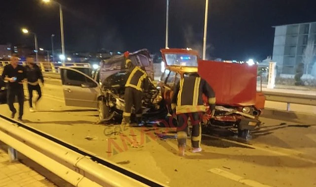 Karaman'da üniversite köprülü kavşağında meydana gelen trafik kazasında iki otomobil kafa kafaya çarpıştı.