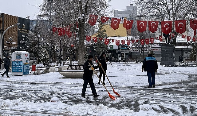 Belediye ekipleri, cadde ve sokaklarda kar temizleme çalışması başlattı.