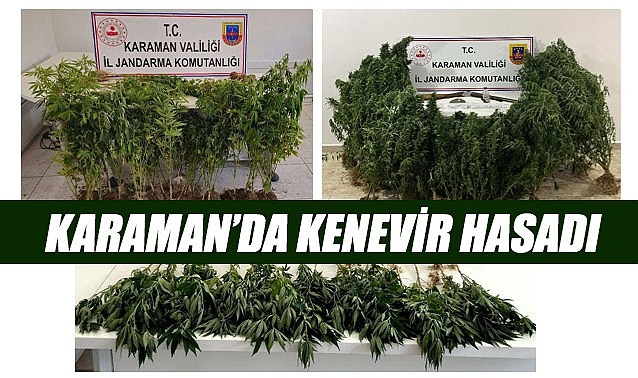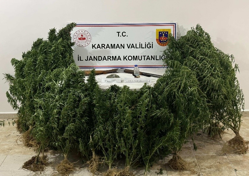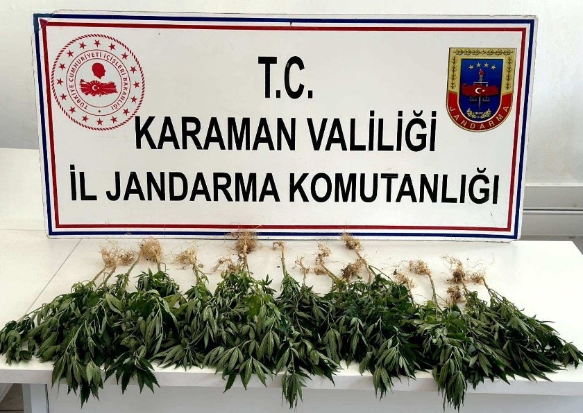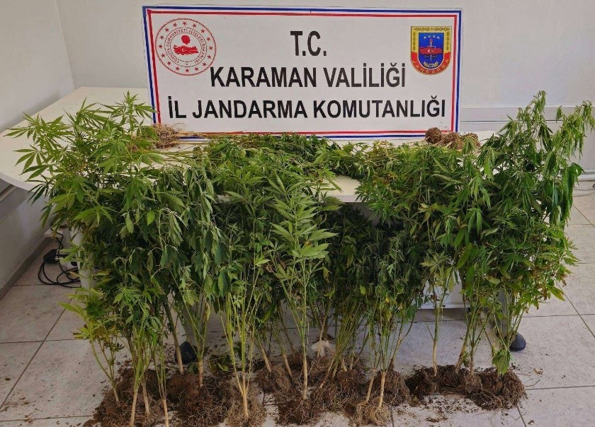Karaman İl Jandarma Komutanlığı ekiplerinin yaptığı çalışmalarda ele geçirilen kenevir çokluğu dikkat çekti
