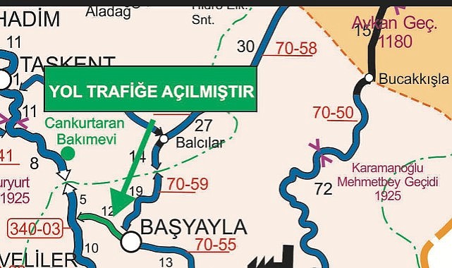 Karaman Valiliğinden yapılan açıklamada, "70-55 Başyayla Ermenek yolu 0 ile 13. Km. ler arası (yörük pazarı Başyayla arası) 21.03.2025 saat 14:45 itibarı ile tüm araç trafiğine açılmıştır" denildi.