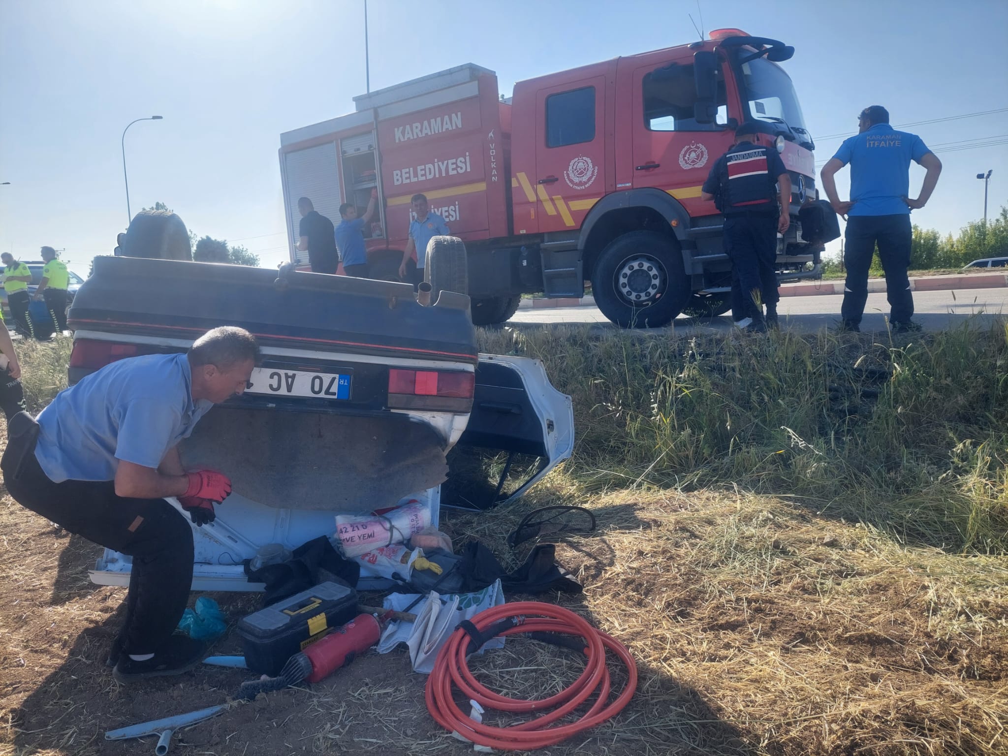 Kaza, ikindi saatlerinde merkeze bağlı Bahçelievler Mahallesi’nde meydana geldi. Edinilen bilgiye göre, M.A. idaresindeki 70 AC 167 plakalı otomobil, seyir halindeyken sürücüsünün direksiyon hakimiyetini kaybetmesi sonucu kontrolden çıkarak şarampole takla attı.