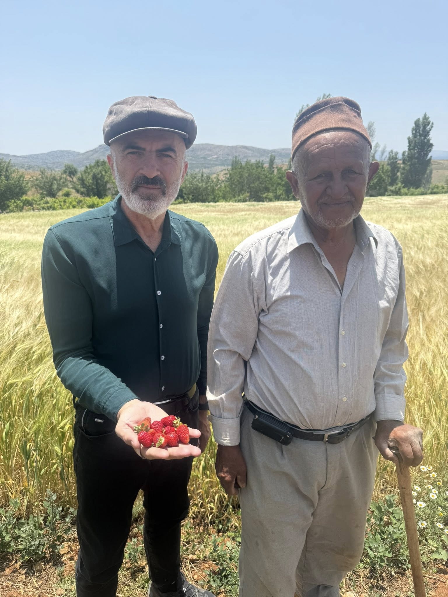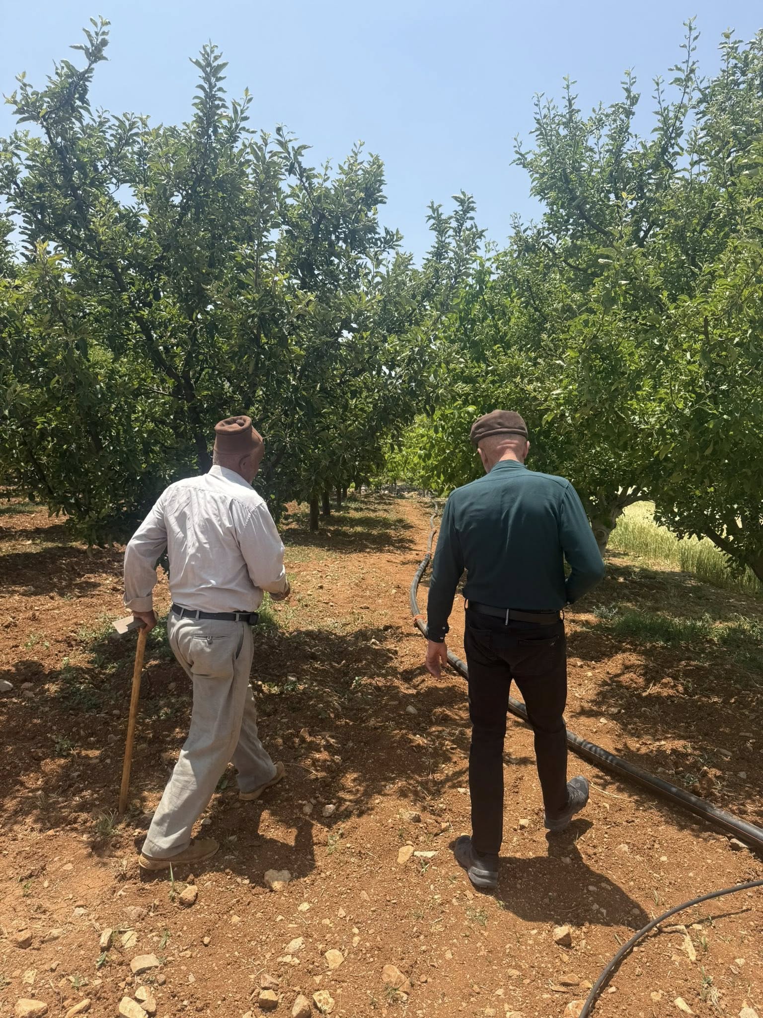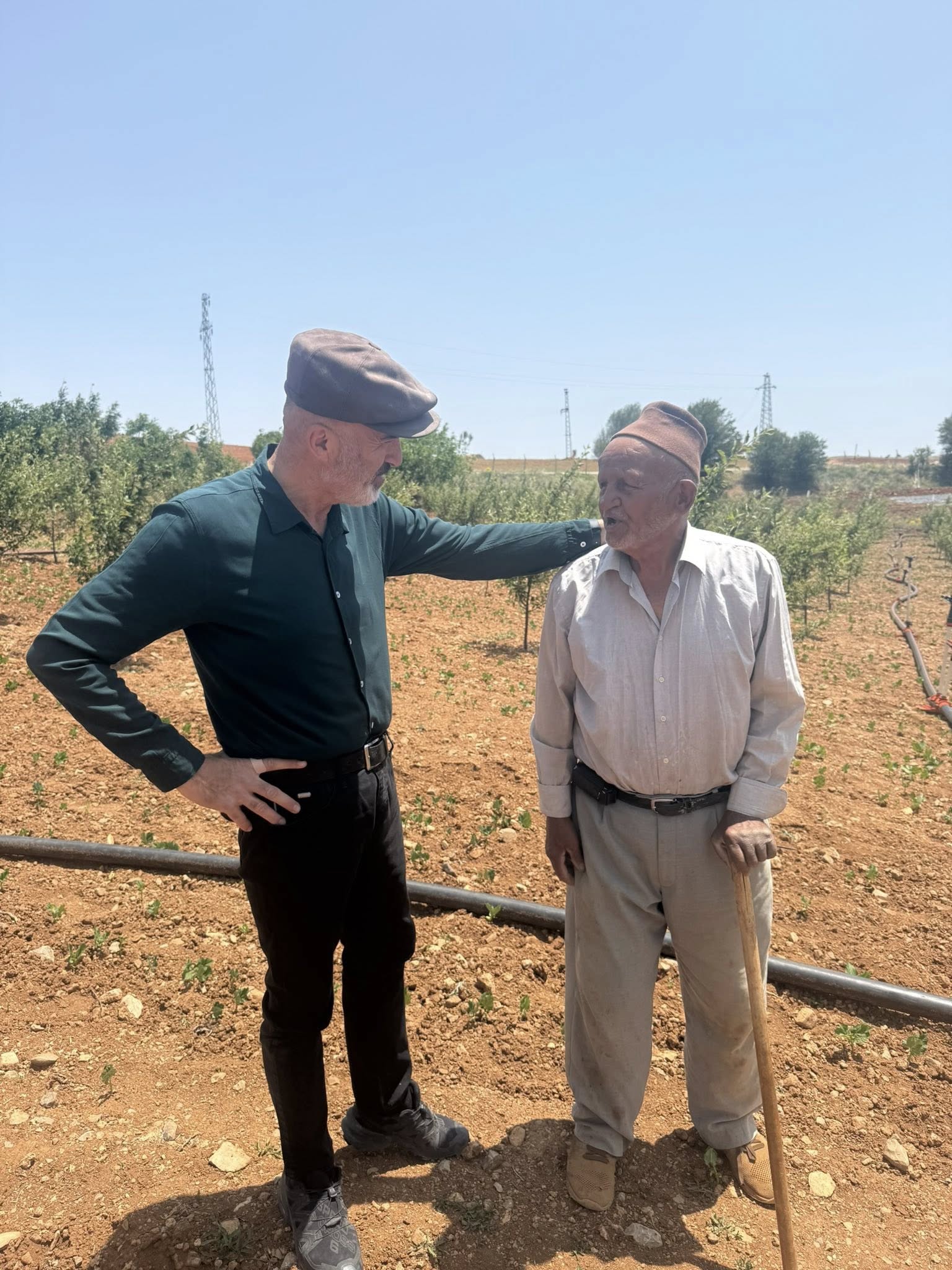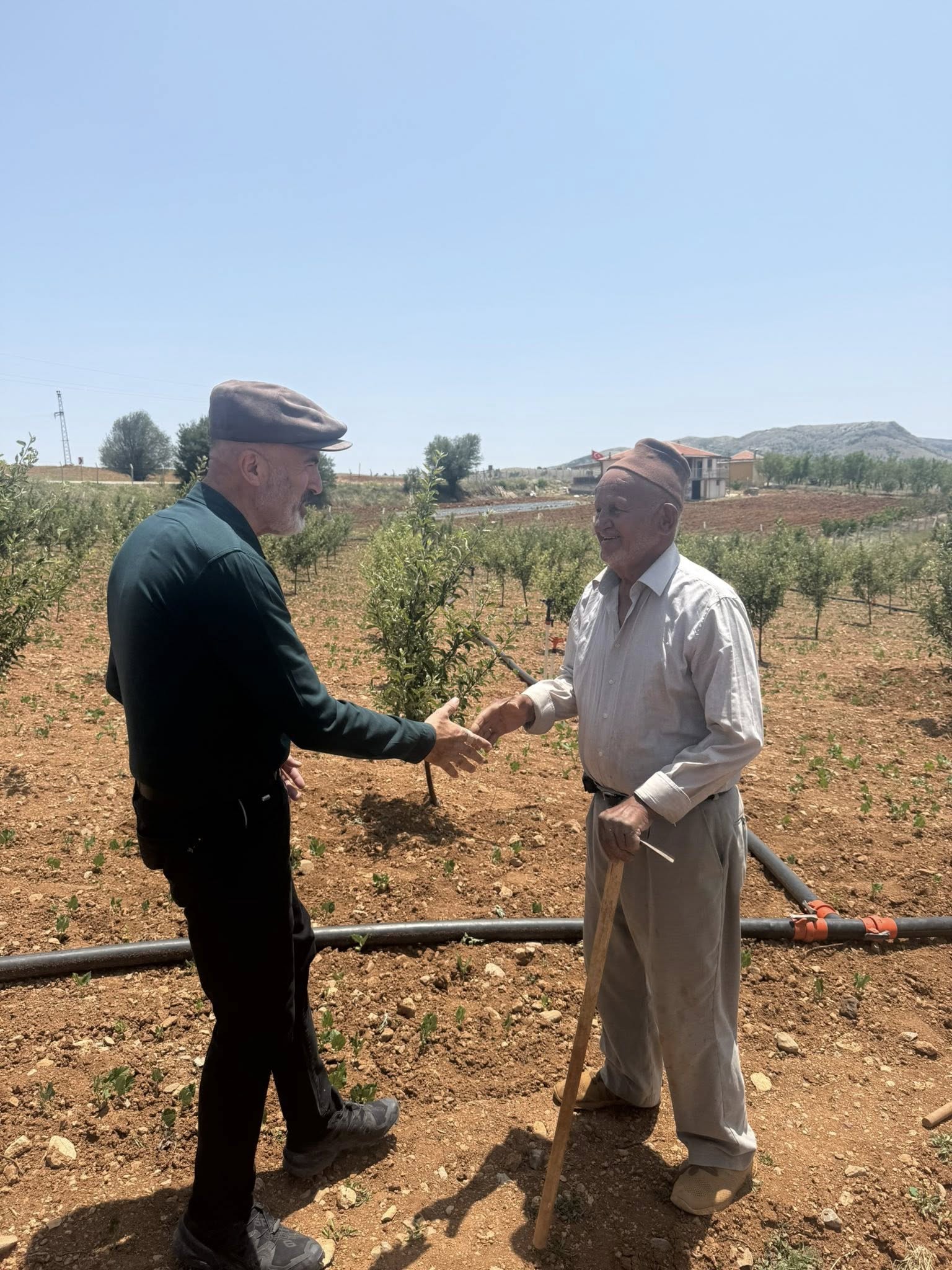 Karaman Ziraat Odası Başkanı Mehmet Bayram, Başkışla köyünde 80 yaşındaki Durmuş Ali Katırcı'yı bahçesinde ziyaret etti