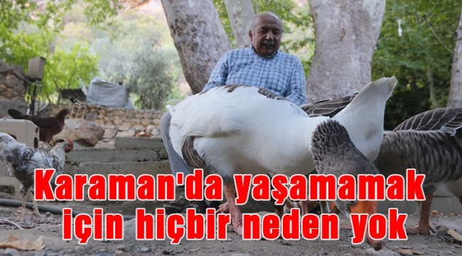 Burada yaşaması için bir çok nedeni olduğunu aktaran Özel, "Buranın rakımı 300 metre. Kar düşmez buraya, yağsa bile hemen erir. Yanı başımda güzel bir Göksu Nehri. Arazim içerisinde içilebilir bir kaynak suyum var. Burada yaşamamak için hiçbir neden yok. Her şey doğal. Ekip biçiyorum. Bahçemde her meyve ağacından 3-5 tane var. Kendi ürettiğim meyveyi yiyorum. Portakal, limon ve zeytin ağaçlarım bile var. Doğal olarak kendi zeytin yağımızı çıkarıyoruz. Burada biber, domates, patlıcan, ıspanak her türlü sebzemi kaldırıyorum. Bunlardan kışın kullanmak için kurutmalık konserve yapıyorum. Ekmeğimi kendim yapıyorum. Ördek, tavuk, kaz, ikişer kedi ve köpeğim var. Bu hayvanların birbirleriyle uyumlu yaşamlarını görmek bile bir neden. Çok huzurluyum." ifadelerini kullandı.