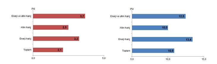 Türkiye'de ise Aralık ayında genel ticaret sistemine göre ihracat %2,1, ithalat %10,9 arttı.